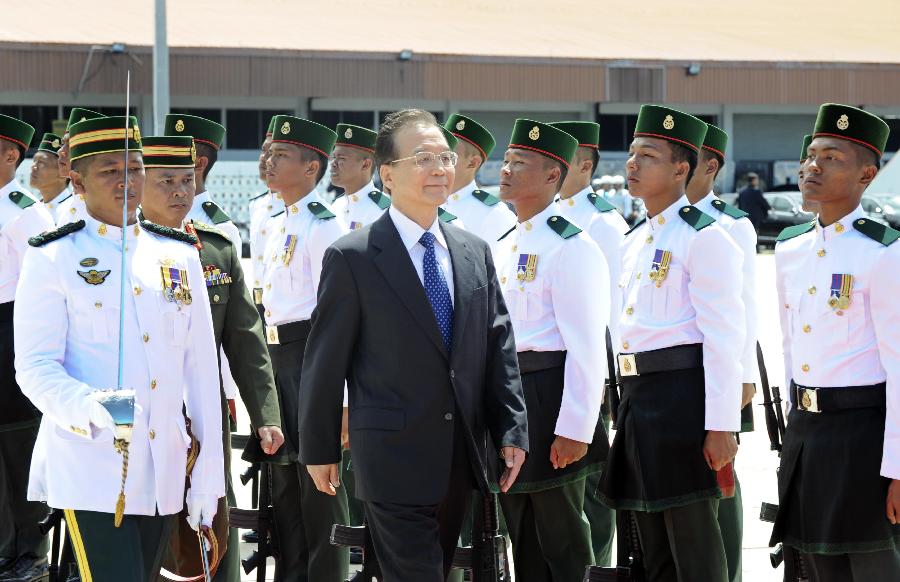 温家宝出席文莱王储比拉举行的欢迎仪式