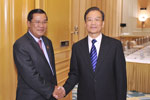 温家宝会见柬埔寨首相洪森