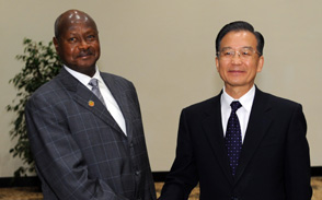 温家宝会见乌干达总统