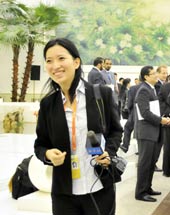 媒体峰会上微笑的志愿者