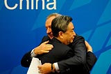 李从军与俄塔社社长伊格纳坚科闭幕会后相拥道别