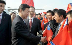 2009年12月14日至22日,国家副主席习近平应邀对日本、韩国、缅甸、柬埔寨四国进行正式访问。在回国途中,陪同习副主席出访的外交部副部长武大伟向随行记者介绍了此访主要成果。