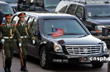 美国总统布什座驾抵达大会堂