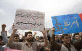 伊朗学生在英驻伊使馆外示威