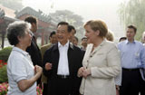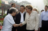 温家宝陪同默克尔到北京菖蒲河公园散步[组图]