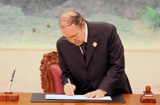 非洲客人在峰会纪念邮封上签名[组图]