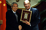 北大校长向希拉克赠送京师大学堂校牌[图]