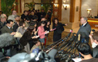 六方会谈中方代表团发言人秦刚举行记者吹风会