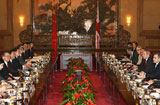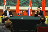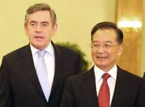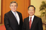 温家宝与布朗会谈:您踏着瑞雪来中国