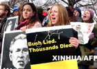 上万人抗议布什就职 有人抬棺有人烧国旗