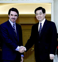 胡锦涛副主席与西班牙首相阿斯纳尔会谈