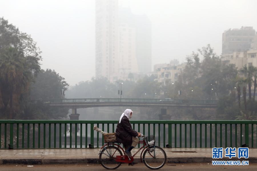 1月4日,在埃及首都开罗,一名男子在晨雾中骑行。新华社发(艾哈迈德·戈马摄)