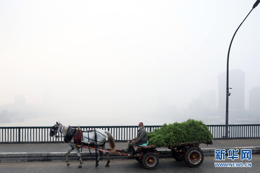 1月4日,在埃及首都开罗,马车在晨雾中驶过。新华社发(艾哈迈德·戈马摄)
