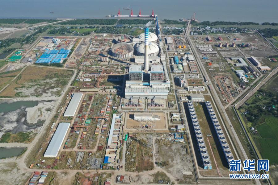 这是2020年11月11日在孟加拉国南部博杜阿卡利县拍摄的帕亚拉2×660兆瓦超超临界燃煤电站(无人机航拍)。新华社发(中机公司供图)