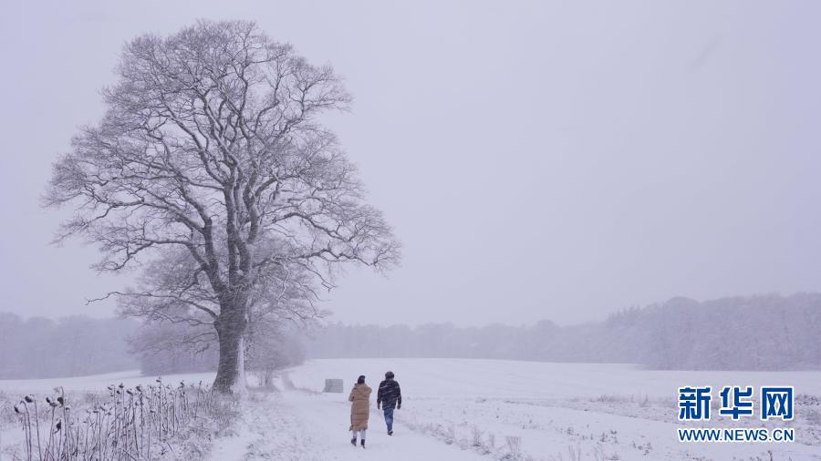 1月6日,在丹麦胡姆勒拜克,人们走在雪中。新华社发(安德斯·孔斯豪 摄)