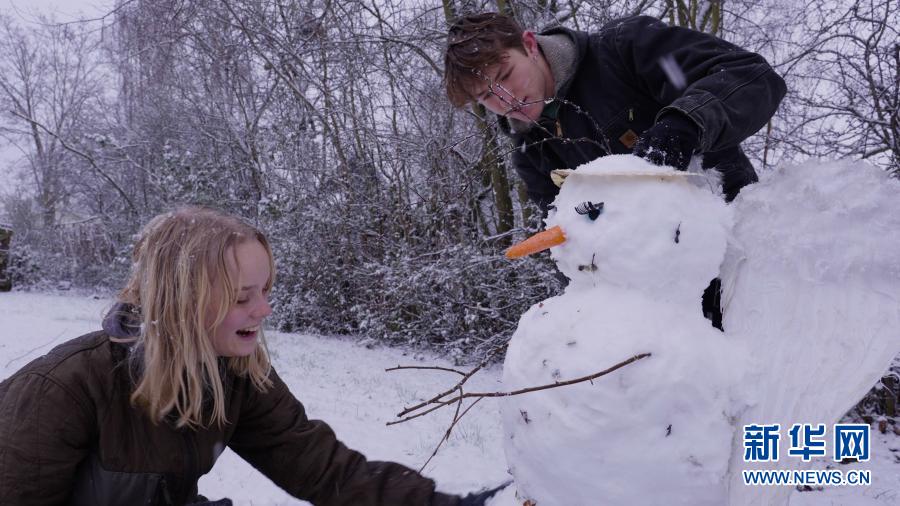 1月6日,在丹麦胡姆勒拜克,年轻人在堆雪人。新华社发(安德斯·孔斯豪 摄)