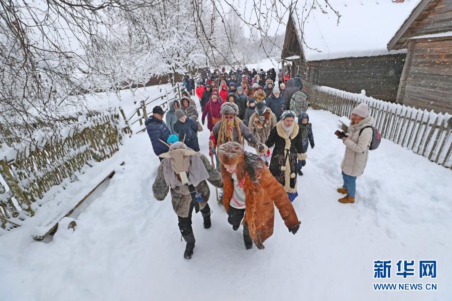 1月9日,人们在白俄罗斯首都明斯克郊区的一处建筑博物馆参加游园活动。新华社发(任科夫 摄)