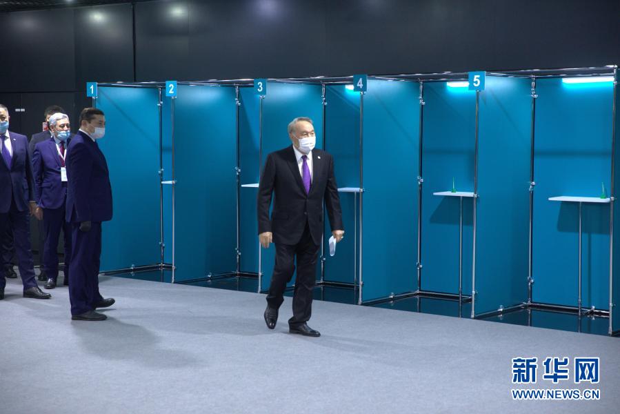 1月11日,在哈萨克斯坦努尔苏丹,哈萨克斯坦首任总统、“祖国之光”党主席纳扎尔巴耶夫参加人民大会推举议会下院独立议席投票。