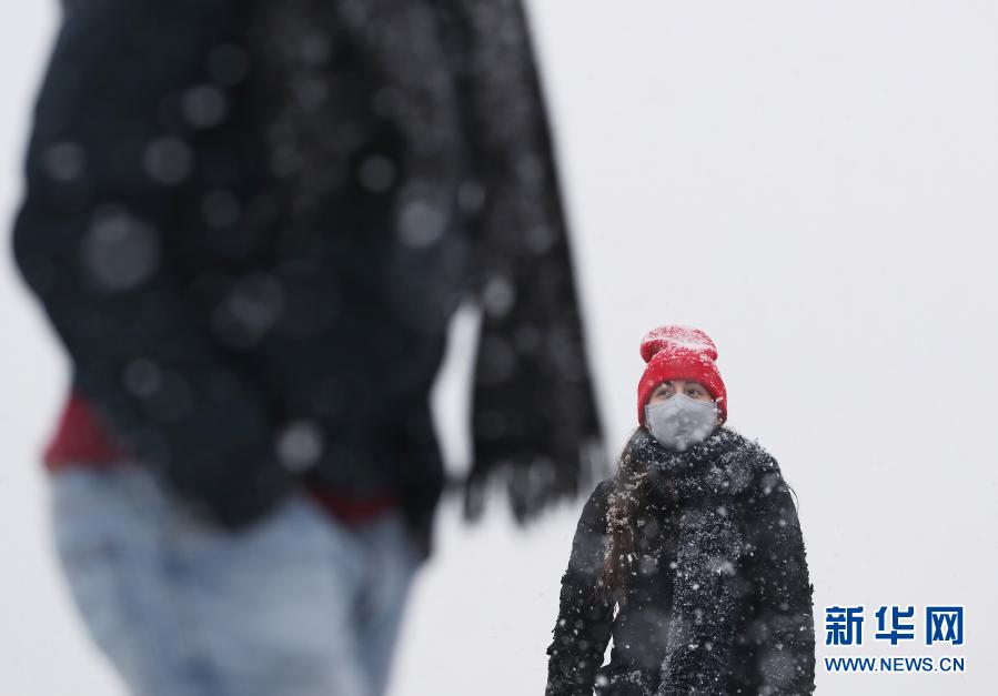 1月16日,人们来到法国巴黎蒙马特高地圣心教堂前赏雪。