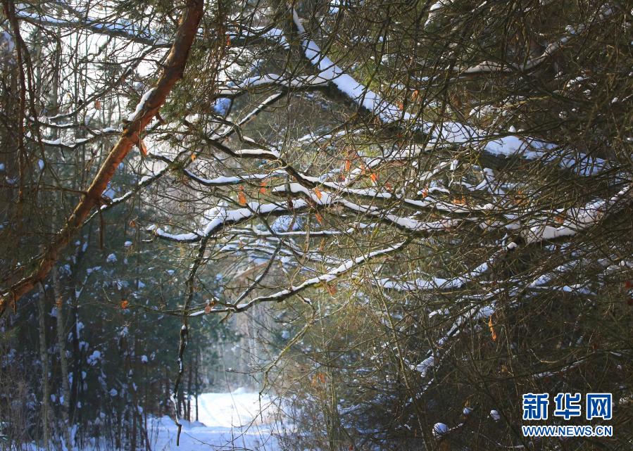 这是1月22日在白俄罗斯首都明斯克郊区拍摄的林中雪景。新华社发(任科夫摄)