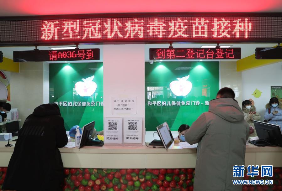 1月13日,在辽宁省沈阳市和平区新华社区妇儿保健免疫门诊,医护人员为接种人员登记信息。新华社记者 杨青 摄