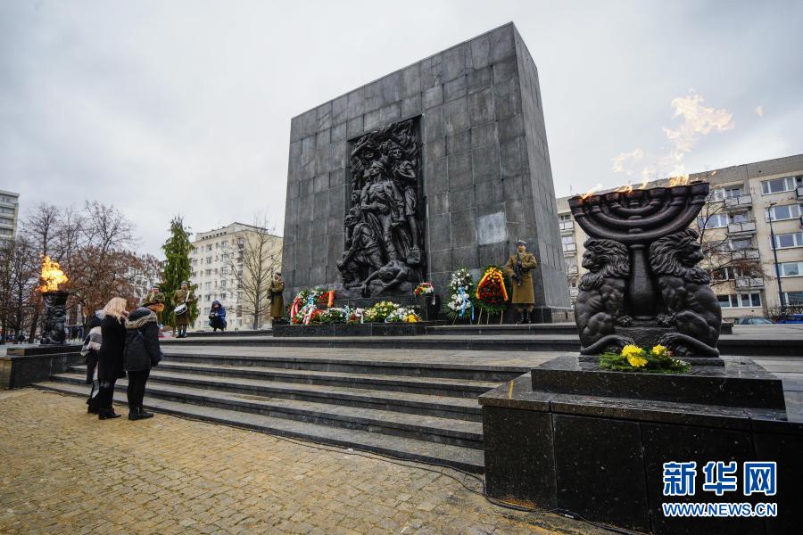 1月27日,人们在波兰华沙的犹太人遇难者纪念碑前参加纪念活动。