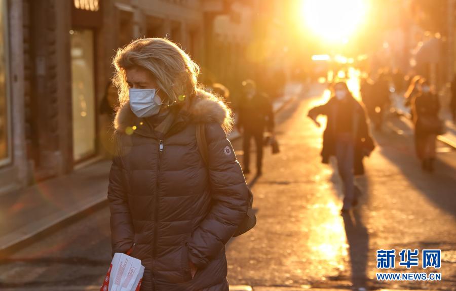 1月27日,一名戴着口罩的女子走在意大利首都罗马街头。