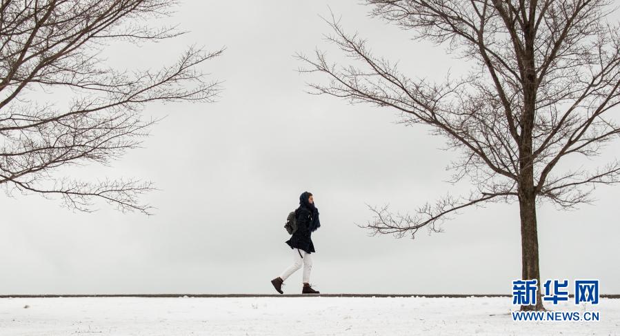 1月26日,在美国芝加哥,一名行人雪中出行。