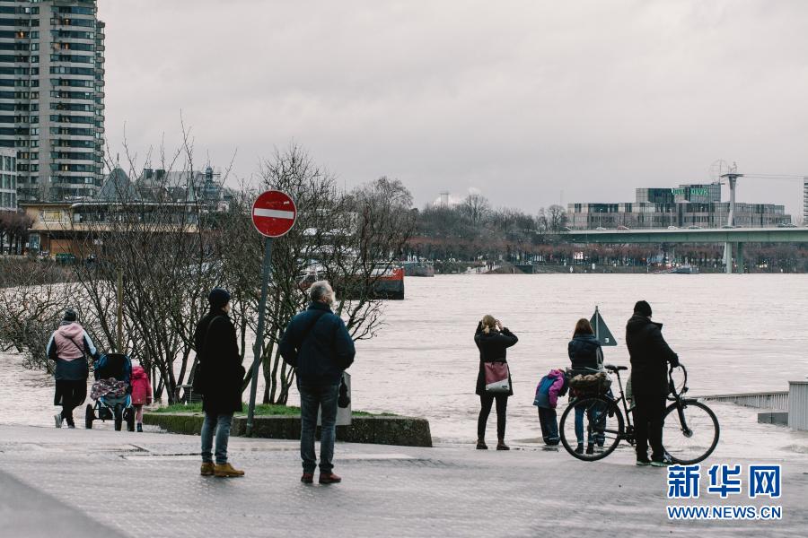 2月2日,在德国科隆,人们站在水位上涨的莱茵河岸边。新华社发(唐颖 摄)