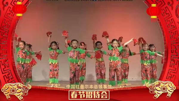墨尔本新金山学校学生在线上春节招待会表演舞蹈。(中国驻墨尔本总领馆供图)