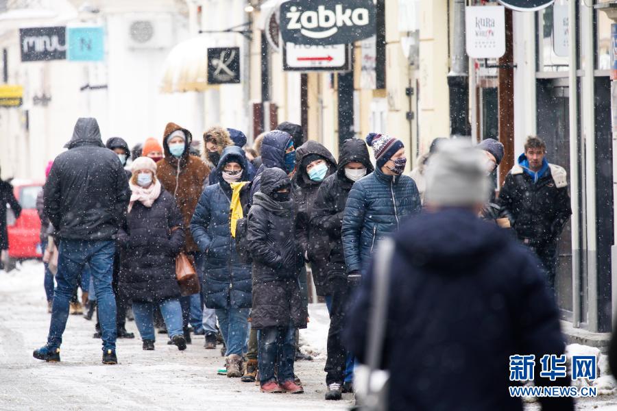 2月11日,顾客在波兰首都华沙的一处面包房外排队等待购买甜面包。
