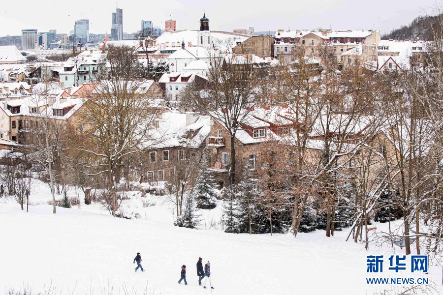 这是2月14日拍摄的雪中的立陶宛维尔纽斯老城。新华社发(阿尔弗雷达斯·普里亚迪斯摄)