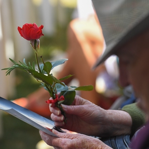 2月22日,在新西兰第二大城市克赖斯特彻奇,一名老人参加大地震十周年悼念仪式。