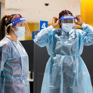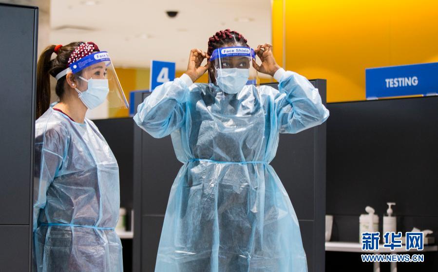 2月22日,在加拿大安大略省多伦多皮尔逊国际机场,医护人员在新冠病毒检测站工作。