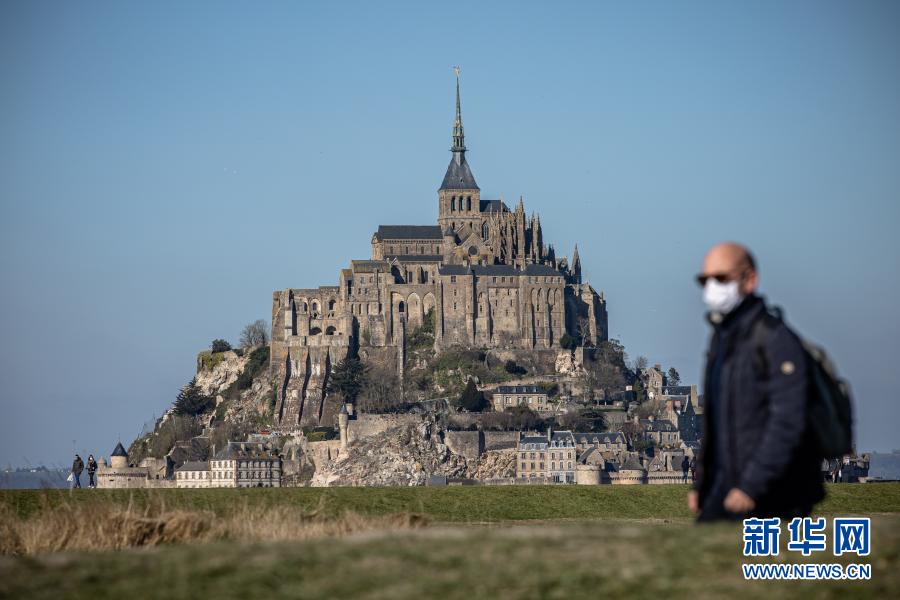 圣米歇尔山位于法国诺曼底和布列塔尼之间,是一座周长900米的圆锥形小岛,由耸立的花岗岩构成,山顶上建有教堂和修道院,是法国著名的旅游胜地。1979年,圣米歇尔山被列入世界文化与自然遗产名录。受新冠肺炎疫情影响,圣米歇尔山修道院自2020年10月30日一直关闭至今。尽管如此,许多游客还是慕名而来一睹其风采。新华社发(奥雷利安·莫里萨尔摄)