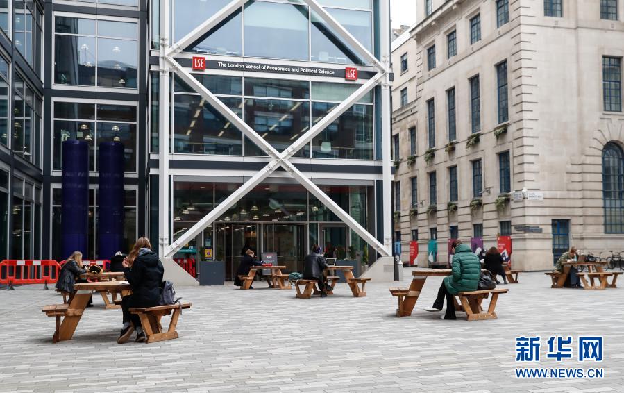 3月8日,学生坐在英国伦敦的伦敦政治经济学院校园内。新华社记者 韩岩 摄