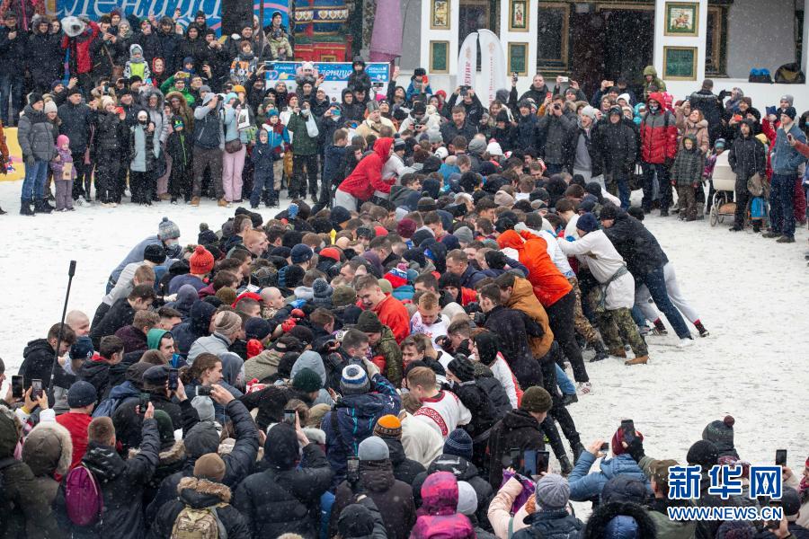 谢肉节又称送冬节,人们在节日期间做游戏、吃薄饼、烧稻草人,迎接春天的到来。新华社发(亚历山大摄)