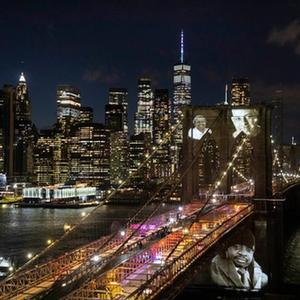 3月14日,新冠逝者的照片在纪念活动上被投射到美国纽约布鲁克林大桥上。当天,美国纽约市举行纪念活动,悼念该市超过3万名新冠逝者。新华社发(郭克摄)
