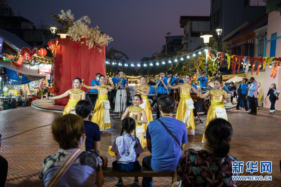3月19日,游客在泰国曼谷翁昂步行街观看表演。新华社记者 张可任 摄