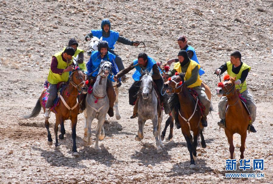 3月21日,骑手在阿富汗巴米扬参加诺鲁孜节“马背叼羊”活动。当日,阿富汗民众迎来诺鲁孜节。新华社发(阿齐米 摄)