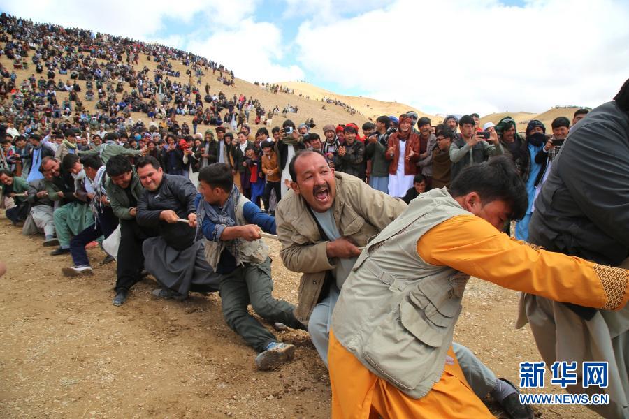 3月21日,人们在阿富汗巴米扬参加诺鲁孜节拔河活动。当日,阿富汗民众迎来诺鲁孜节。新华社发(阿齐米 摄)