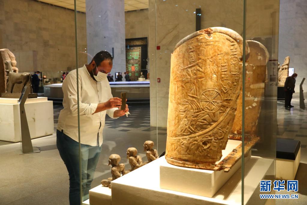 4月4日,参观者在位于埃及首都开罗的埃及文明博物馆拍照。
