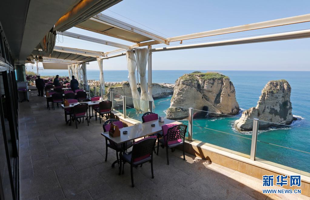 4月13日,在黎巴嫩贝鲁特著名景点鸽子岩附近的一家餐厅客人稀少。