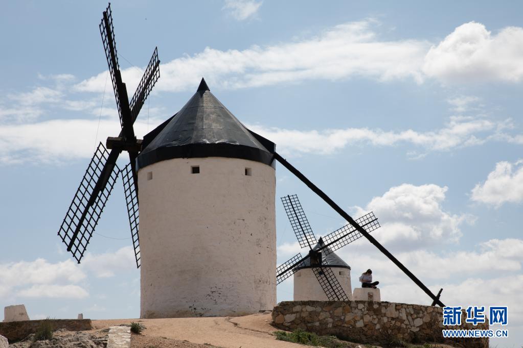 这是4月16日在西班牙卡斯蒂利亚—拉曼查自治区孔苏埃格拉小镇拍摄的风车。