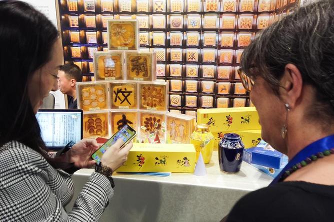 2019年11月8日,在匈牙利布达佩斯,观众在第十六届世界中医药大会现场参观展出的中医药产品。新华社发(弗尔季·奥蒂洛摄)