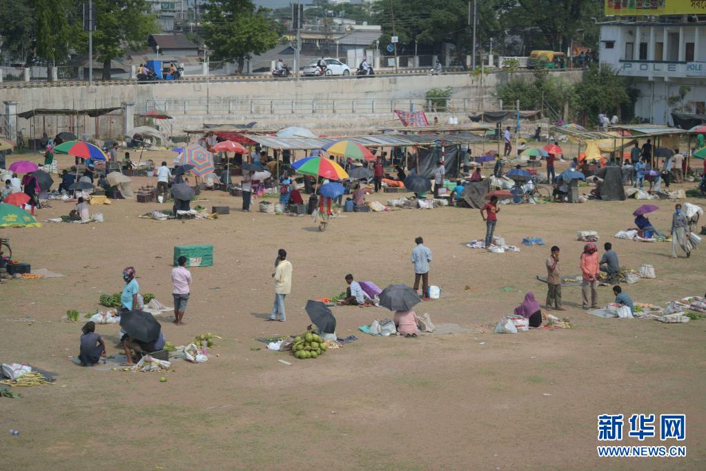 为使人们能够更好地保持社交距离,印度阿加尔塔拉一处菜市场从原有的拥挤地点搬至这处开阔的露天空场。