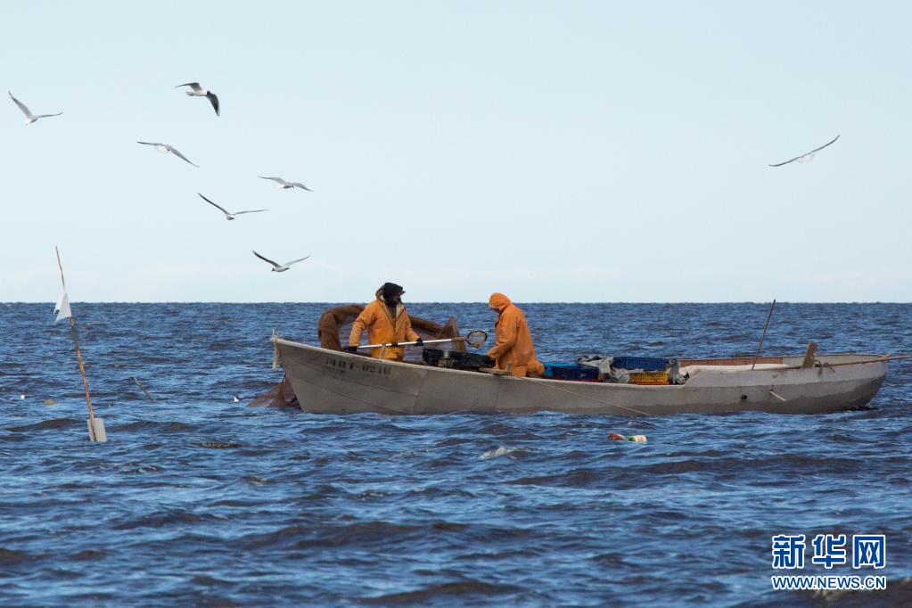 4月30日,渔民在位于俄罗斯列宁格勒州的拉多加湖捕捞胡瓜鱼。