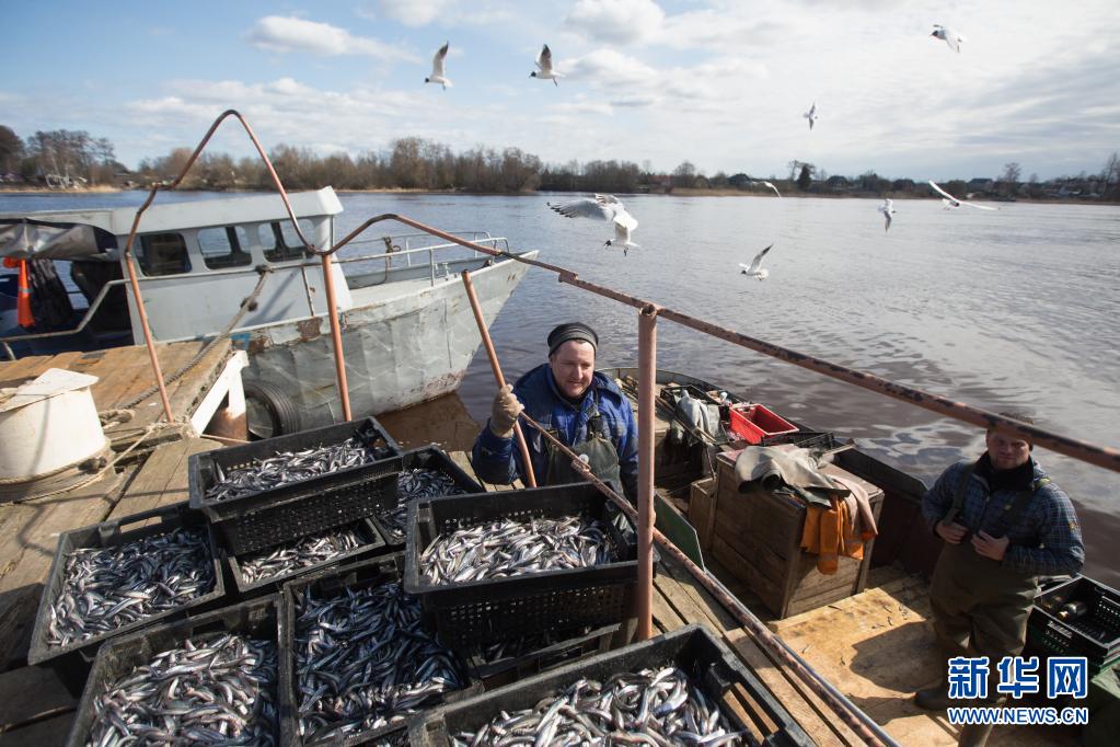 4月30日,渔民在位于俄罗斯列宁格勒州的拉多加湖捕捞胡瓜鱼。