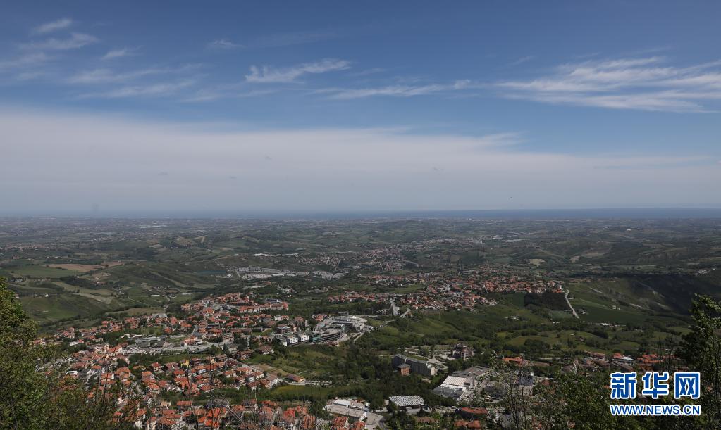 这是5月6日在圣马力诺城中拍摄的远处的亚得里亚海。