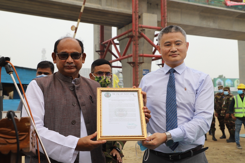 5月4日,孟加拉国铁道部部长向中国中铁颁发感谢信。(项目方供图)